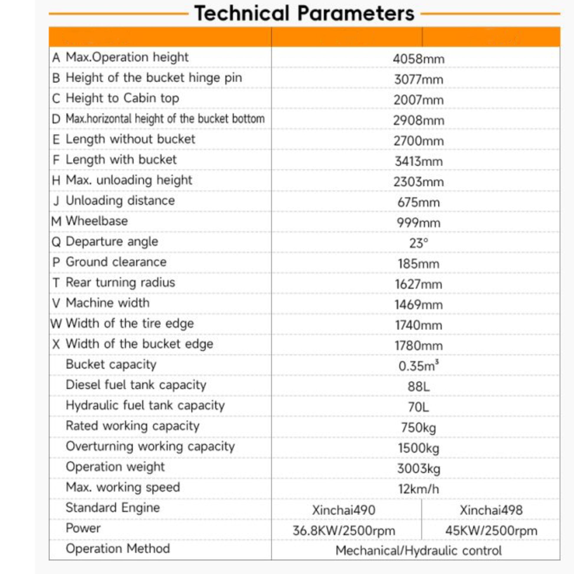 | Operating Weight | 3003 kg |